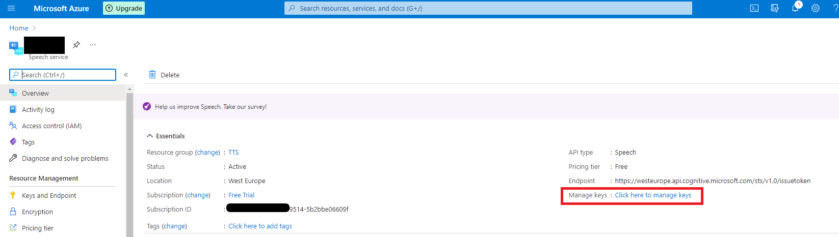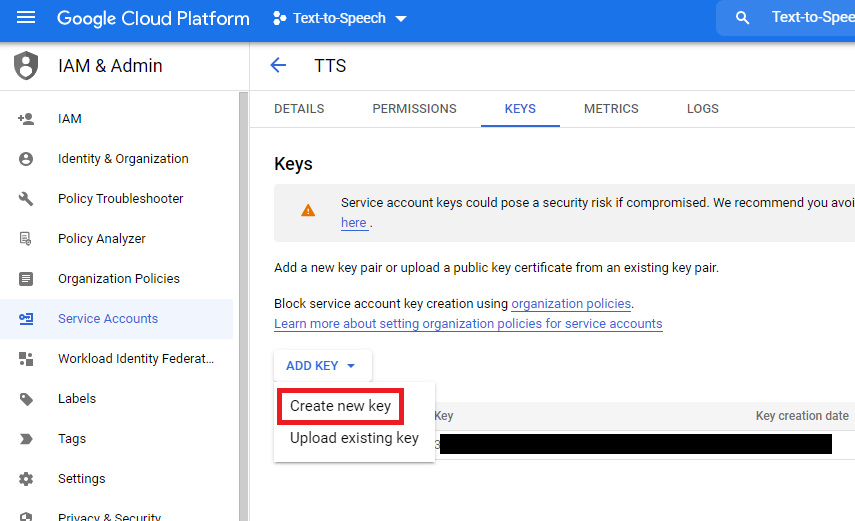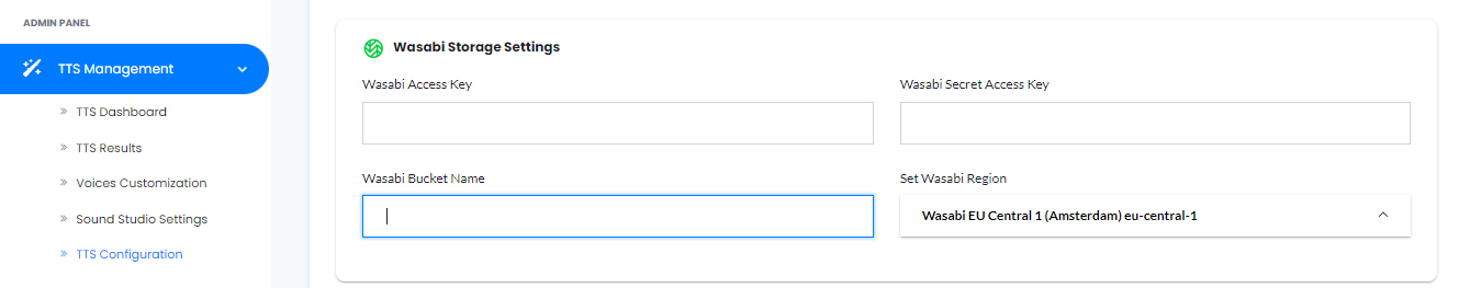 Under Admin -> TTS Management -> TTS Configuration -> AWS, include your Access and Secret Access Keys: